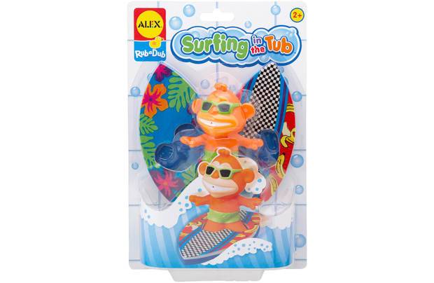 Surfing in the Tub - это оригинальная игрушка от производителя Alex, которая представляет собой резиновую обезьянку на пенопластовой доске для серфинга. Обезьянка хорошо держится на воде, что обязательно впечатлит малыша и сделает процесс купания более увлекательным и веселым. Для того, чтобы обезьянка двигалась по воде, ее следует подталкивать, а пенопластовая доска не даст обезьянке перевернуться.Упаковка: картонная коробка блистерного типа.