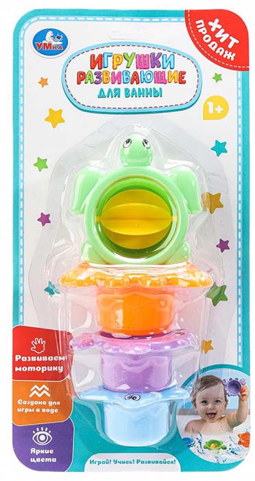 Красочная пирамидка с водяной мельницей в виде черепашки и яркими формочками сделает купание ребёнка весёлым и интересным занятием. Малыш с удовольствием будет играть с такой милой и увлекательной игрушкой.Особенности: