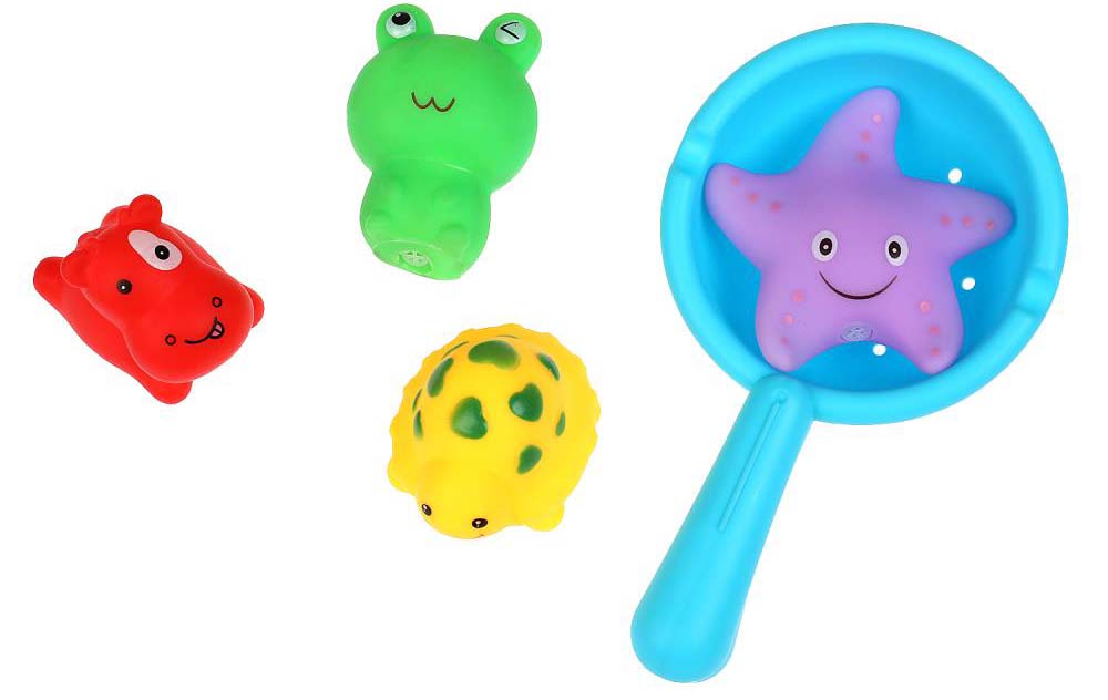 Набор игрушек для ванны превратит принятие водных процедур в праздник. Ребёнок с удовольствием и интересом будет «охотиться» за красочными водными животными с помощью небольшого и лёгкого сачка. Такой улов станет гордостью маленького рыбака!Особенности: