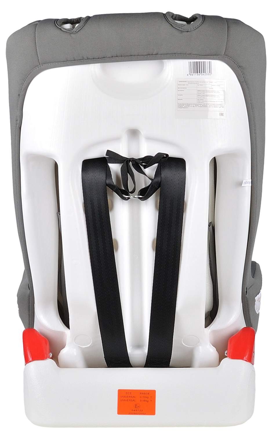 - Крепится в автомобиле с помощью штатных ремней безопасности и устанавливается по ходу движения автомобиля и против него, в зависимости от веса и возраста ребёнка.