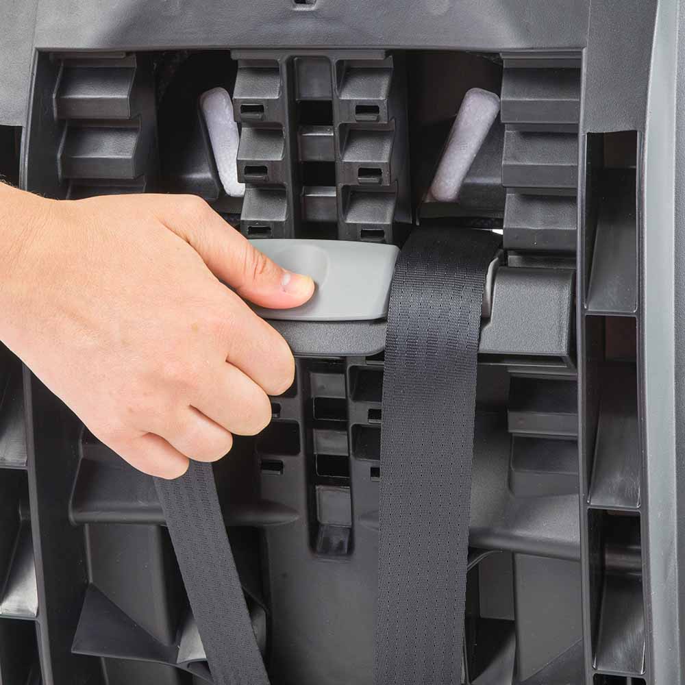 - Внутренние 5-точечные ремни с широкими противоскользящими накладками регулируются по росту вместе с подголовником.