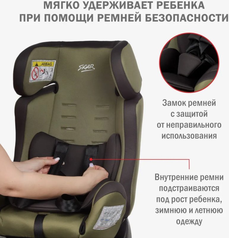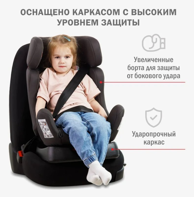 - Автокресло имеет ярко выраженную боковую защиту и надежную систему крепления внутренних пятиточечных ремней