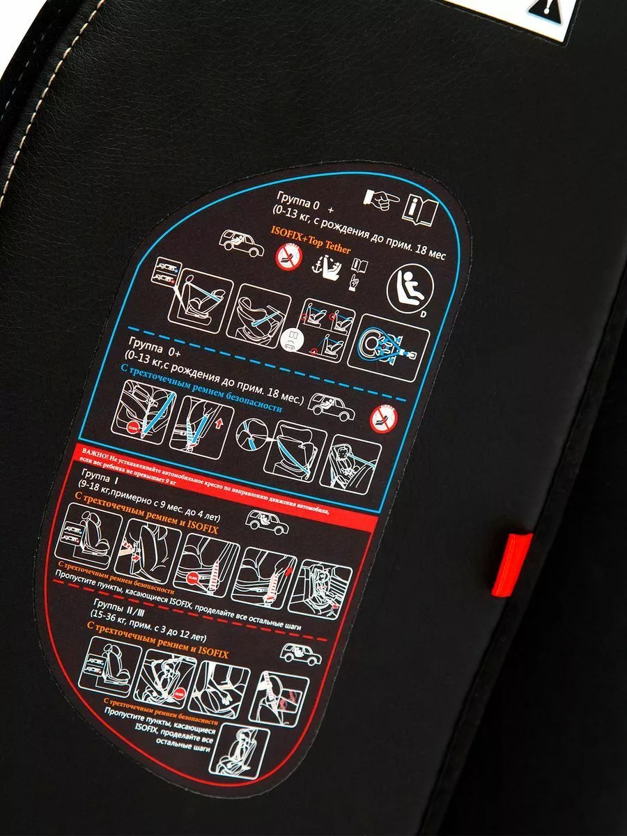 - Кресло может быть установлено в автомобиле как с помощью системы креплений Isofix, так и с помощью 3-х точечного ремня безопасности, также кресло оснащено дополнительной якорной системой крепления – Top Tether.