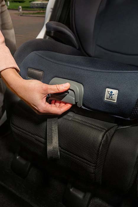 - Спинку детского сиденья можно легко отстегнуть одним движением, превращая его в относительно компактный бустер