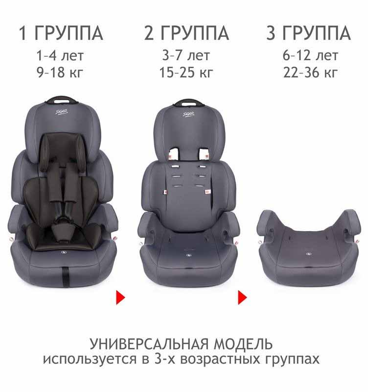 - Группа III (вес: 22-36 кг, возраст: 6-12 лет) – спинка кресла демонтируется, используется только бустер