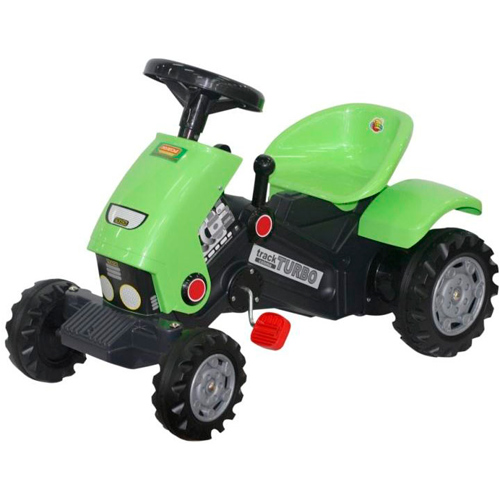 Педальные машинки представляют собой машинки с рулём, одним сидением и педалями, как у велосипеда. Именно с помощью педалей и цепного привода машинка приводится в движение, а колёсами управляет руль.