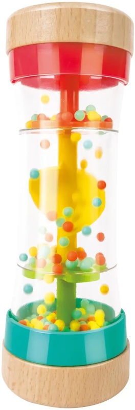 - Набор включает маленький бубен, вертушку-погремушку, тканевый мячик, кольцо для захвата и игрушку-шейкер с шумом дождя