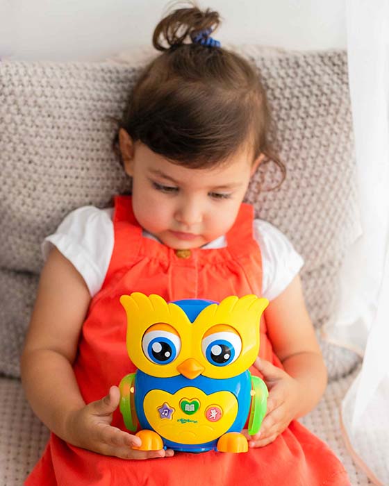 Оживите вместе с ребёнком музыкальную сову своим прикосновением, и она начнёт петь и махать крылышками в такт! А ещё игрушечная сова умеет разговаривать: она расскажет вашему ребёнку первые детские сказки: "Курочка Ряба", "Колобок", "Репка", "Теремок", "Заюшкина избушка" и расширит словарный запас ребёнка.Музыкальная сова рекомендована детям от 3 лет. Особенности: двигаются глаза и крылышки совы. На крылышках есть мигающие огоньки, которые двигаются в такт песенкам и мелодиям: "Два весёлых гуся", "Добрый жук", "Песенка про алфавит", "Четыре таракана и сверчок", "Если весело живётся, делай так", "Полька", "Арам зам-зам", "33 коровы", "Собачий вальс", "Немецкая полька".