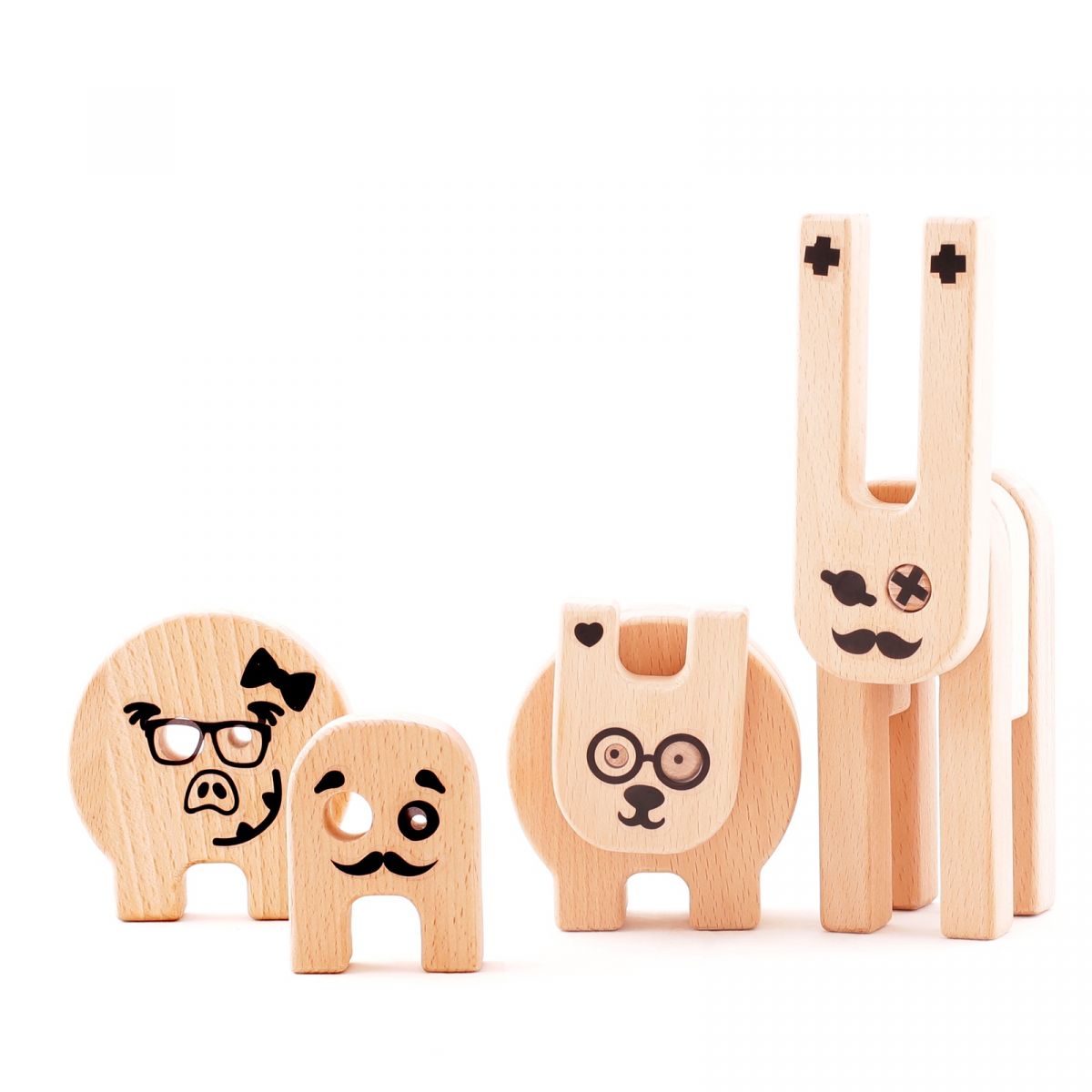 Пусть воображение вашего ребенка разыграется с этом забавным конструктором!Двухсторонние деревянные части с наклейками позволяют детям собирать множество вариантов забавных существ и животных, стимулируя их воображение и улучшая их мелкую моторику.