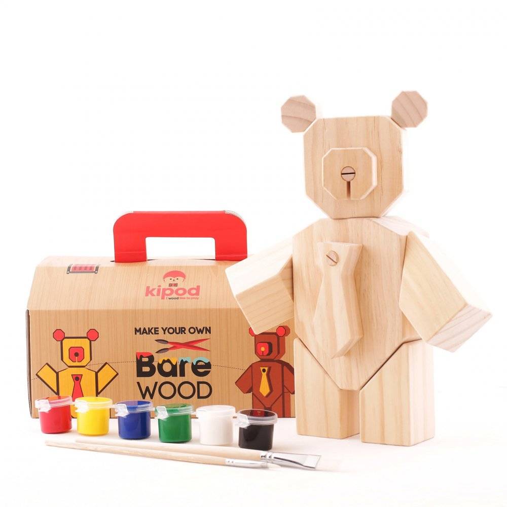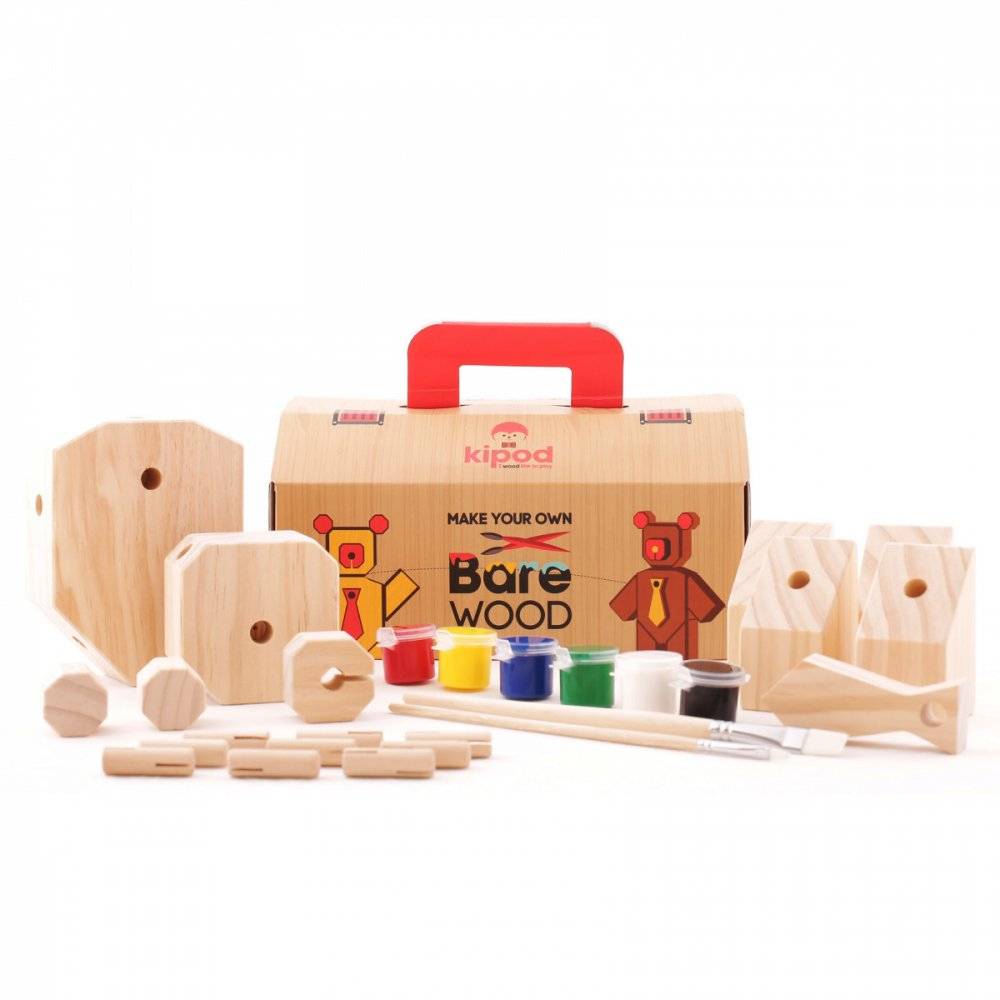 Соберите и покрасьте своего собственного деревянного медведя! На медвежонка, изготовленного из высококачественной древесины, ваш ребенок может наносить краски, которые идут в комплекте, и делать его уникальным.Фантазия малыша не ограничена: это могут быть панда, гризли или вовсе сказочный персонаж! Медвежонок может принимать четыре положения: стоя, сидя, лёжа и на четвереньках.