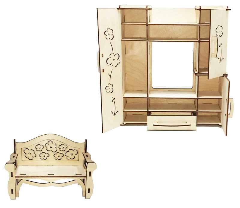 Теперь у любимой куколки вашей дочки появится уютная гостиная с изящной мебелью, где можно отдыхать вместе с гостями, сидя на удобном диване. А шкафчик с открывающимися дверцами и выдвигаемым ящиком позволит удобно хранить одежду из гардероба и небольшие аксессуары для куклы.Особенности: