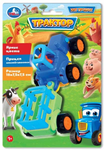 Игрушка-каталка в виде трактора с прицепом заинтересует вашего малыша. Благодаря оптимальным размерам её удобно катать маленькой детской ручкой. Для более интересной игры в прицеп можно посадить какую-нибудь фигурку, например, игрушечное животное и организовать его перевозку на «ферму». Прицеп в случае необходимости можно легко отцепить и прицепить снова.Особенности: