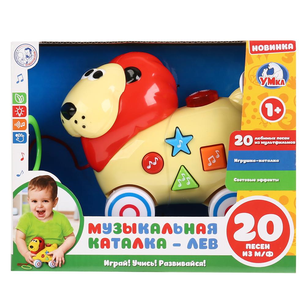 Музыкальная каталка «Лев» ТМ «УМка» - отличный подарок для вашего малыша.Игрушка выполняет функции 4 в 1: слушаем: 20 веселых песен из любимых м/ф: «Песенка мамонтенка», «Облака», «Веселая карусель», «Песенка крокодила гены», «Антошка» и др., учимся: расширяем словарный запас и кругозор, играем: катаем льва, развиваем мелкую моторику, нажимая на кнопочки