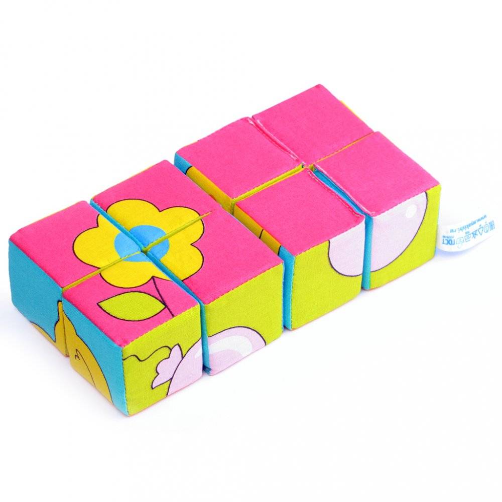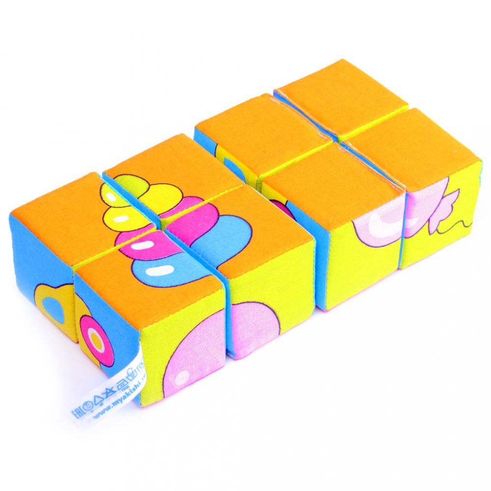 Кубики изготовлены из высококачественной ткани с мягким наполнителем. Поэтому они абсолютно безопасны даже для самых маленьких детей.