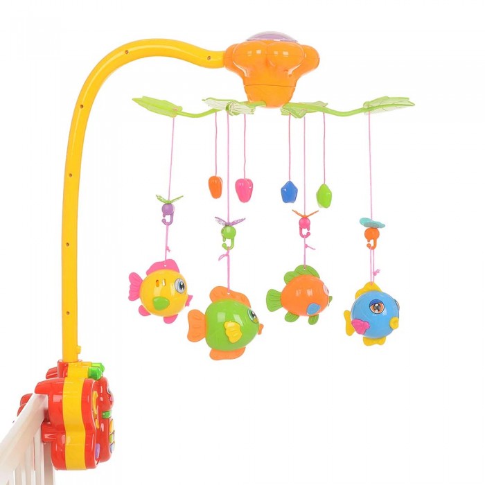 Мобиль "Рыбки. Бабочка" - яркая красочная и музыкальная карусель, очень полезна для малыша в первые месяцы жизни. Она отлично привлекает внимание малыша, тем самым развивает фиксирование взгляда на движущихся предметах, а встроенная музыкальная шкатулка с приятной мелодией прекрасно успокаивает. Погремушки-зверушки можно снять и дать в ручки. Они послужат отличным предметом для развития моторики рук.