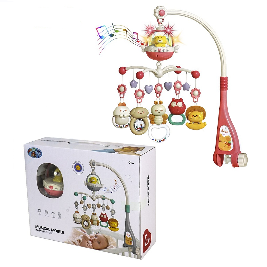 Подарите малышу волшебство перед сном с этой очаровательной музыкальной подвеской на кроватку! Мобиль оснащен встроенным проектором, который создает на потолке успокаивающие световые эффекты — мерцающие звезды. Нежные колыбельные мелодии помогут ребенку расслабиться и быстрее заснуть. Регулируемая громкость, таймер автоотключения и вращающиеся игрушки в виде различных животных делают этот мобиль идеальным помощником для родителей. В наборе есть пульт для дистанционного управления музыкальным мобилем. Мобиль крепиться на бортик кроватки. Игрушка работает от батареек (в комплект не входят).