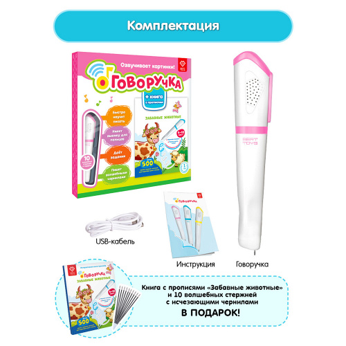 Более 500 звуков, заданий, прописей для подготовки руки к письму.Книга взаимодействует с говоручкой, рассчитана для девочек и мальчиков.
