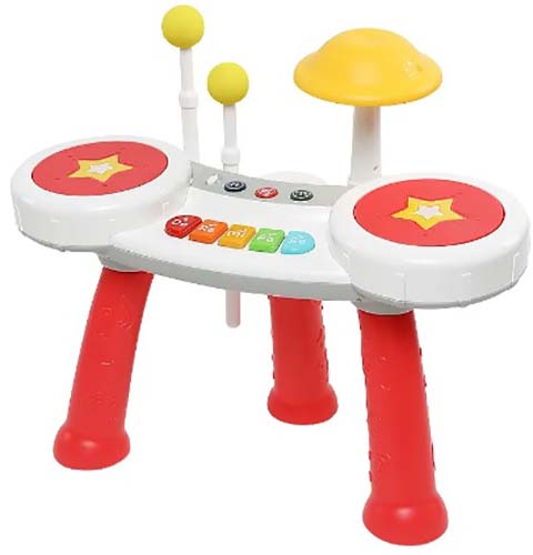 - Светомузыкальный барабаны идут в комплекте с барабанными палочками на подставках