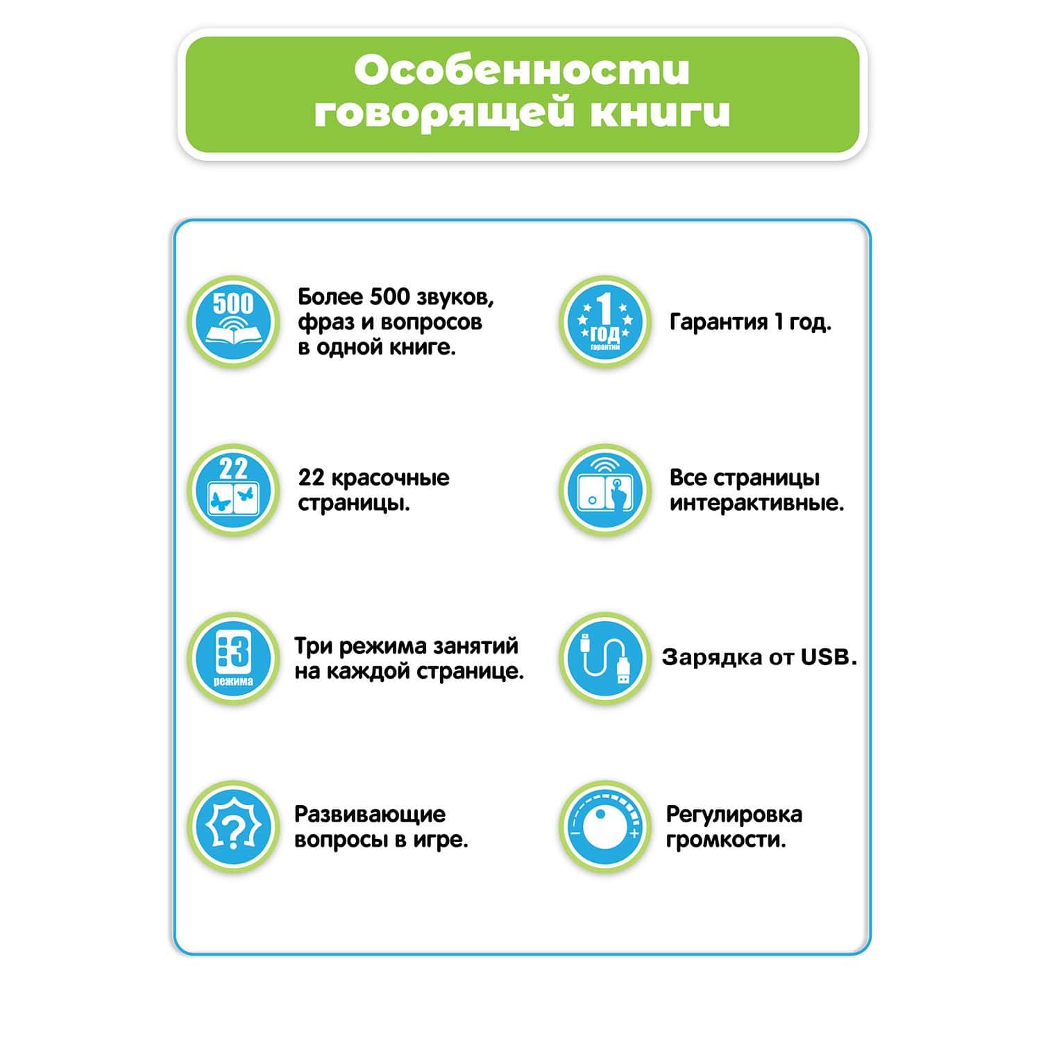- Более 500 звуков, фраз и заданий сделают процесс обучения увлекательным и разнообразным. 3 режима занятий на каждом развороте.