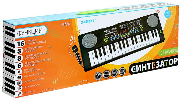 Уже с раннего возраста малыш проявляет неподдельный интерес к различным звукам: шорохи, стуки, скрипы. А звук музыкальных инструментов кажется чем-то волшебным и не обычным. Поэтому синтезатор можно давать ребёнку уже с 3 лет. Это разовьет слух и музыкальные способности малыша.Особенности: