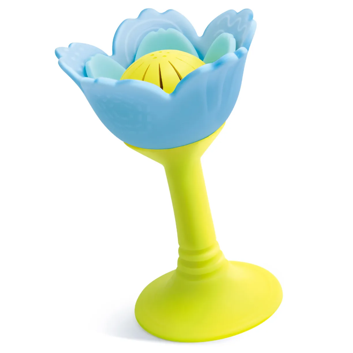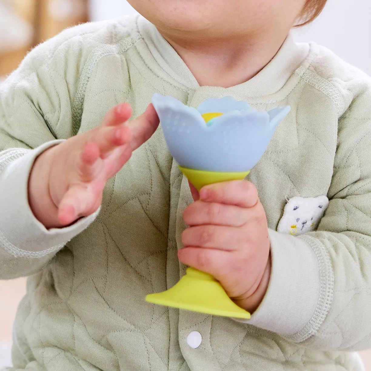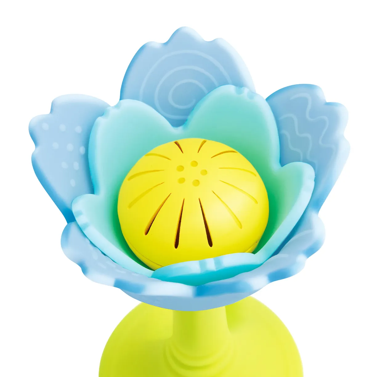• Многофункциональность. Центральная часть цветка оснащена шуршащими бусинами, создающими приятные звуковые эффекты, а лепестки выполнены из мягкого силикона, идеально подходящего для массажа дёсен.