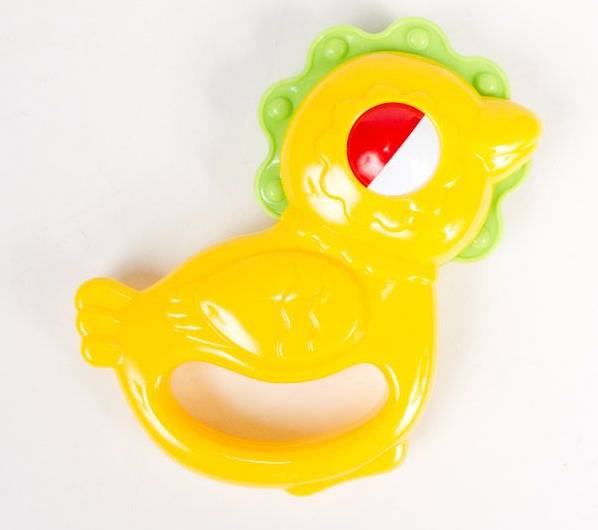 Если малыш капризничает или кричит,то лучшим средством для его увлечения становится погремушка. Малыш отвлекается на цветную, яркую и шумящую вещь, и перестает плакать. Играя с этойпогремушкой, ребенок будет развивать мелкую моторику рук, тактильное и звуковое восприятие. Погремушка сделана в форме ципленка с ручкой, поэтому его удобно держать в руках.