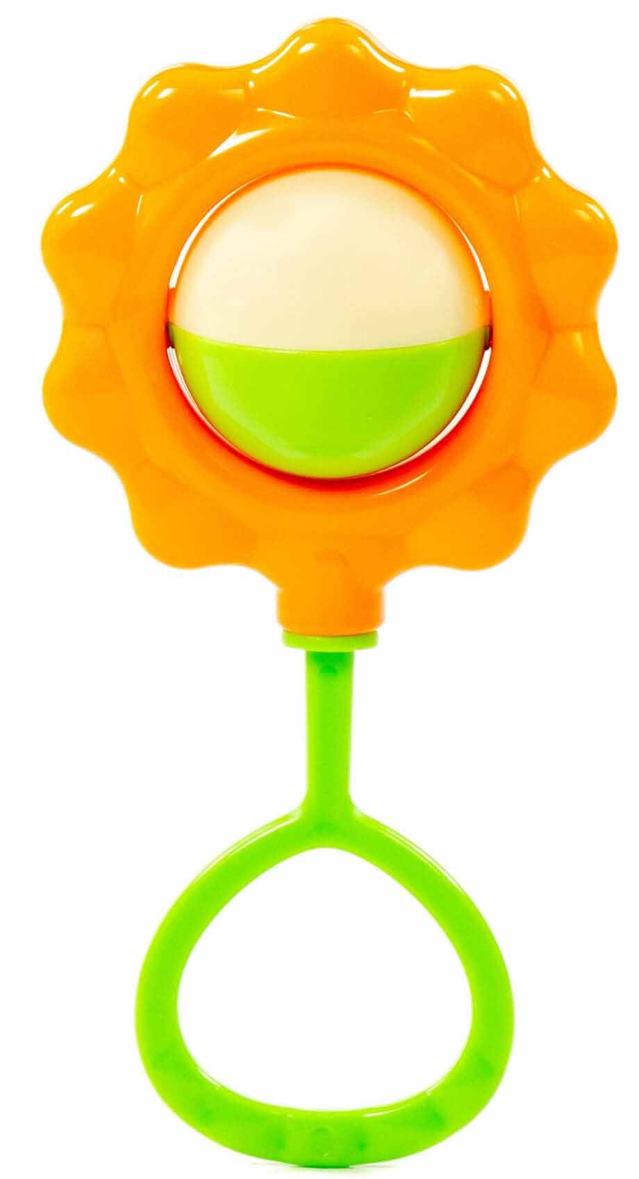 - Погремушка выполнена в виде цветочка, и внутри содержит шарики