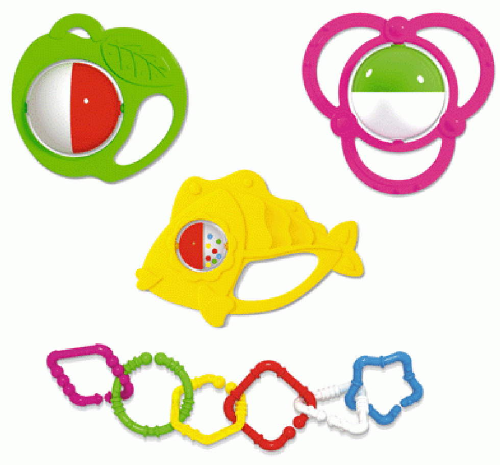 - Для полноценного развития малышу нужны погремушки разных цветов, форм, с разными рукоятками