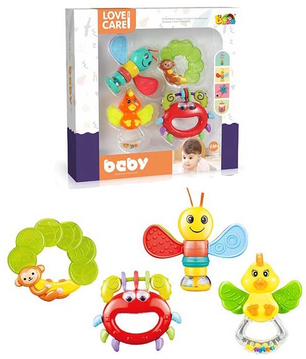- В наборе имеются прорезыватели для зубов из мягкой резины, которые бережно массируют десна малышу
