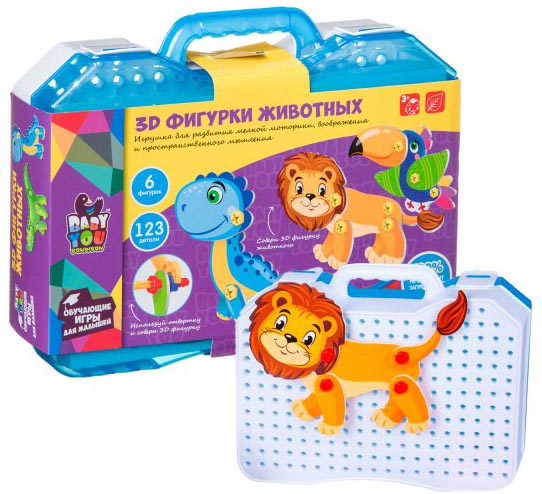 Яркая разноцветная игра с 3D фигурками отлично подойдет малышам от 3 лет.Особенности: