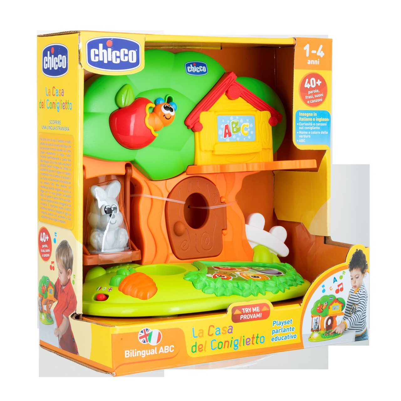 Говорящий домик Bunny House от Chicco - это двуязычная обучающая игрушка для детей первого года жизни, обновленная версия всеми любимой Говорящей Фермы.
