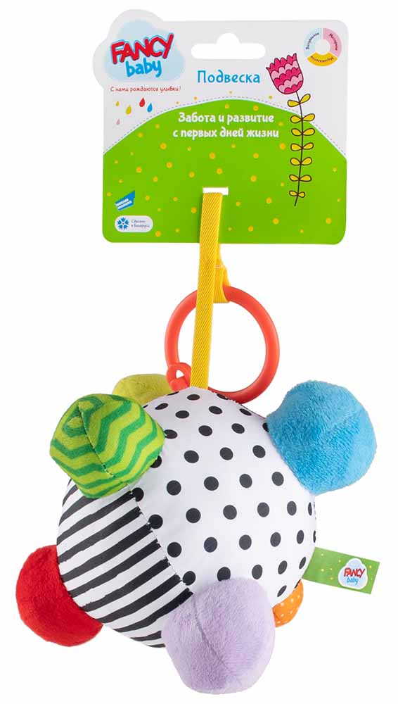 - Погремушка и пищалка внутри изделия стимулируют органы слуха малыша