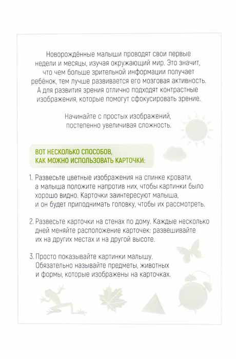 После 3 месяцев малыши готовы изучать новые цвета и оттенки. Научиться различать цвета ребёнку помогут контрастные цветные карточки с изображением форм, животных и предметов окружающего мира. Показывайте картинки и развивайте зрение малыша!Карточки способствуют: