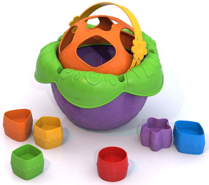 - Малыш будет подбирать подходящие формочки, знакомясь с особенностями каждой и ее цветом