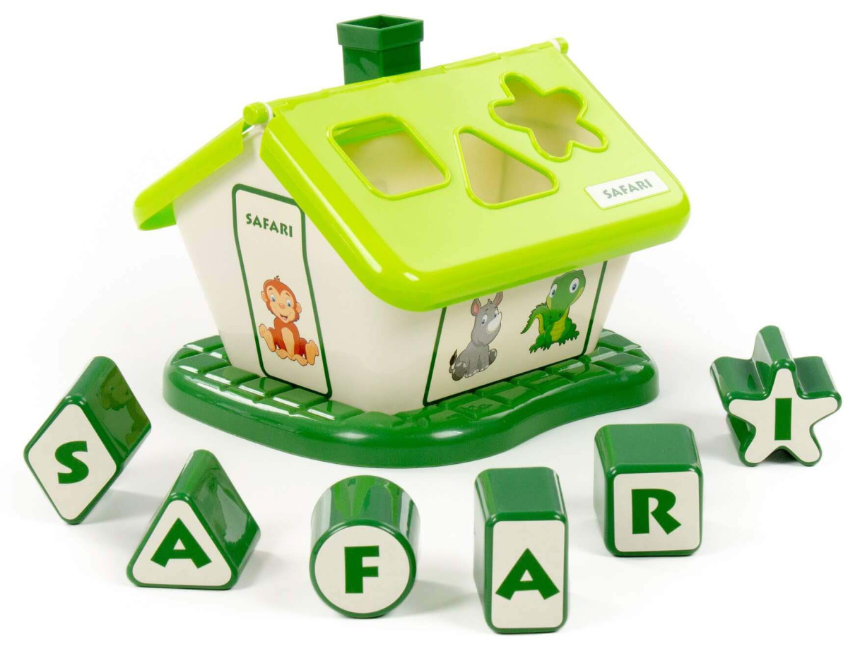 На крыше домика задача: ребёнку нужно сопоставить фигурки с отверстиями - пазлами.Особенности: