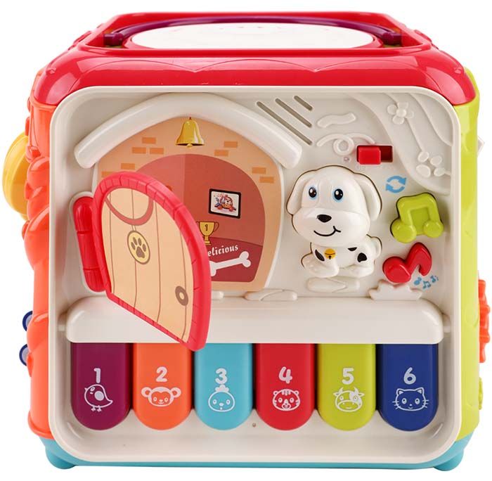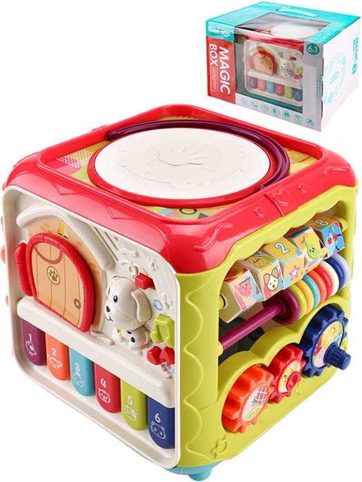 - На каждой грани кубика имеются различные изображения, фигуры и подвижные элемент