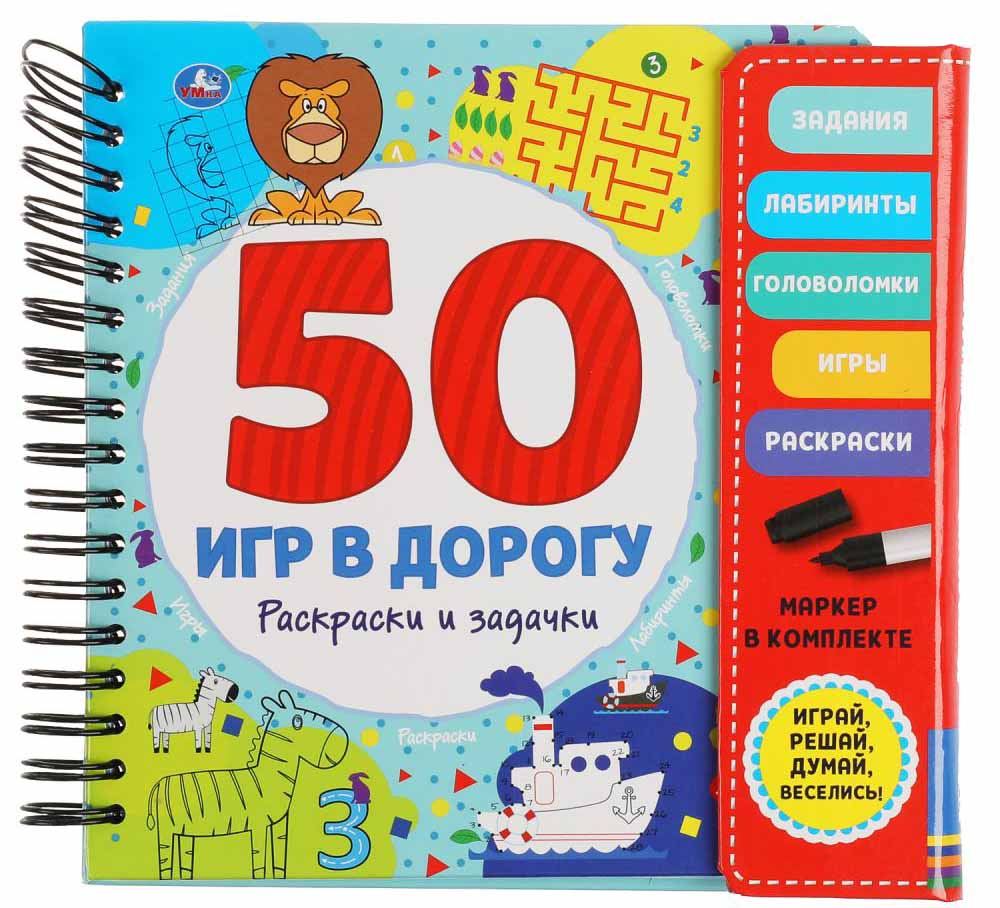 Детский блокнот «50 игр в дорогу. Раскраски и задачки»