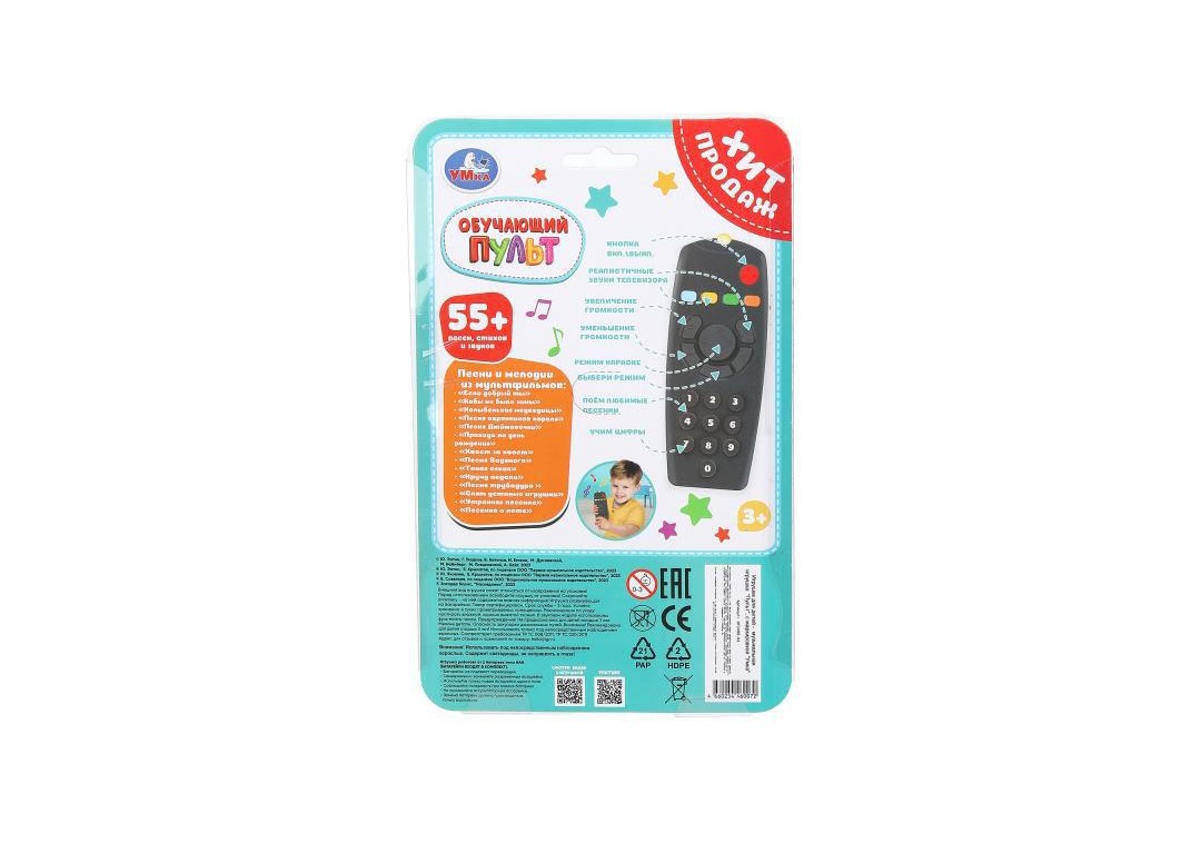 Умка Пульт обучающий.пластик графит, 55+ песен, стихов и звуков на блист.