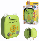 Копилка принимает бумажные купюры и монеты. Оснащена механизмом, который при поднесении купюр затягивает их в сейф, как настоящий банкомат и открывается только при наборе кода, который вы заранее установите. Наберите числовой код, дождитесь, пока загорится зеленый индикатор, и нажмите кнопку открытия сейфа.Особенности: