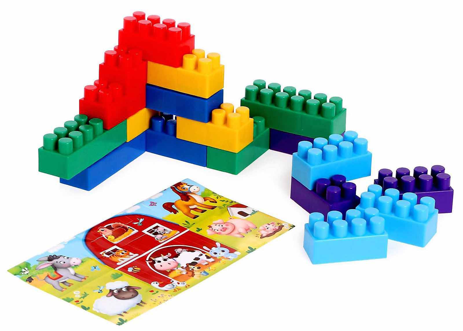 Конструктор - одна из лучших развивающих игрушек для детей. Ребёнок, словно творец, создаёт из разных элементов невиданных животных, строит небывалые замки и города, рушит и изменят их к лучшему! Чем больше деталей в конструкторе, тем выше полёт фантазии!Красочный конструктор «Весёлая ферма» привлекает внимание и стимулирует познавательную активность малышей. Ребёнок в игровой форме познакомится с основными цветами, научится различать предметы по величине и считать их. Будет знать, как выглядят домашние животные и зверята с фермы, и правильно произносить их название.