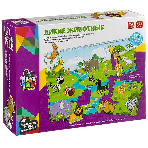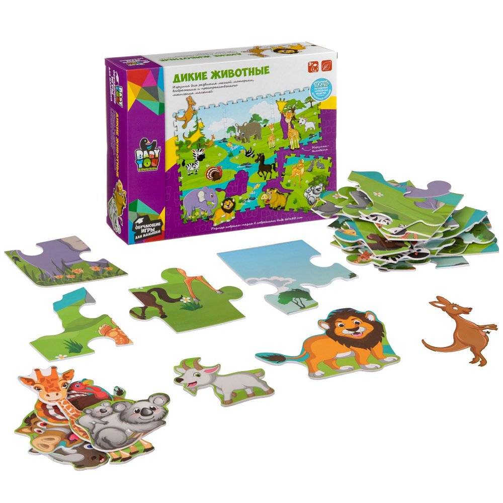 Наборы пазлов ТМ Bondibon подойдут малышам от 1,5 лет. В наборе 6 пазлов разной комплектации от простых, состоящих из 2-х деталей, до более сложных, состоящих из 4-х деталей. Прекрасная игрушка для развития пространственного и логического мышления, памяти и внимания. Пазлы изготовлены из безопасного вспененного полимера, обладающего прекрасными гигиеничными свойствами, прочного и не впитывающего влагу.Для того, чтобы купить Bondibon Пазл-коврик Дикие Животные с фигурками-вкладышами, 60х80 см. в интернет-магазине Малыш необходимо добавить данный товар в корзину. Также вы можете связаться с менеджером по телефону или написать в онлайн чат для оформления заказа.