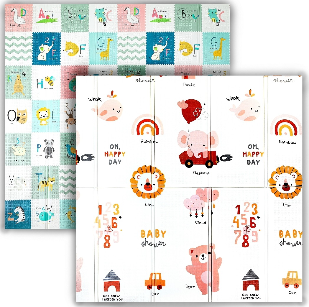 Игровой коврик с обеих сторон украшен милыми узорами, которые пробуждают любопытство и стимулирует малышей к изучению окружающего мира. Достаточно просто перевернуть коврик на другую сторону и ваш малыш заново увлечен. Родители могут вместе с малышом лежать, играть на коврике, ведь он очень большой, места хватит всем.