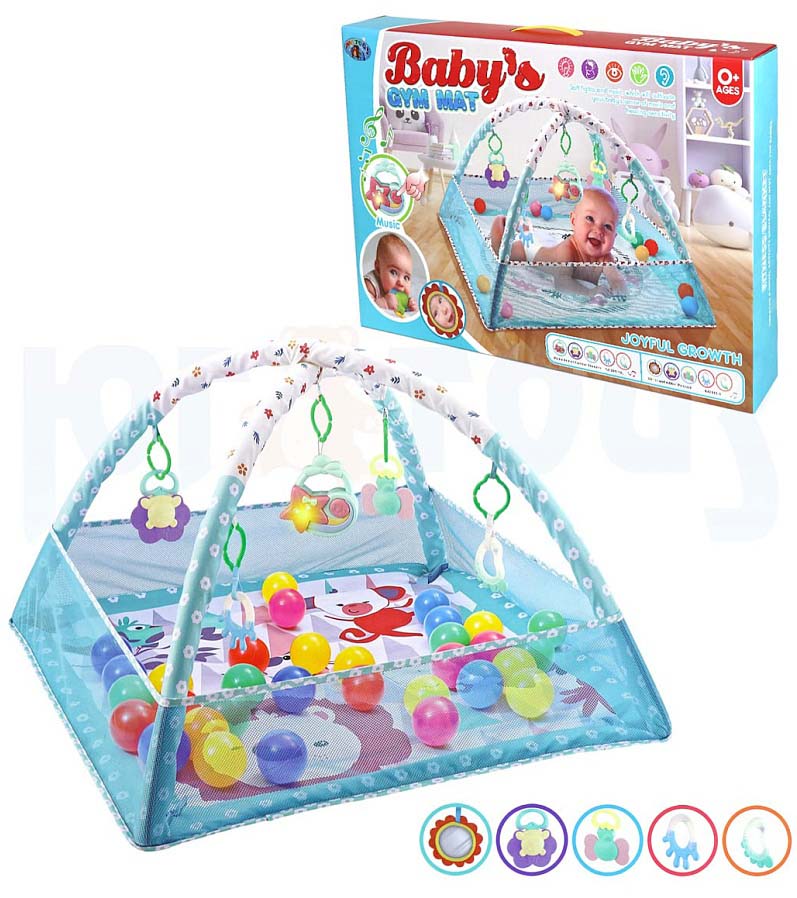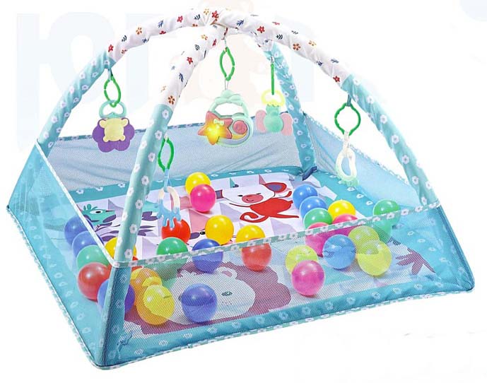 - Ребенок сможет весело сидеть в манеже с шариками и играть с различными подвесными игрушками