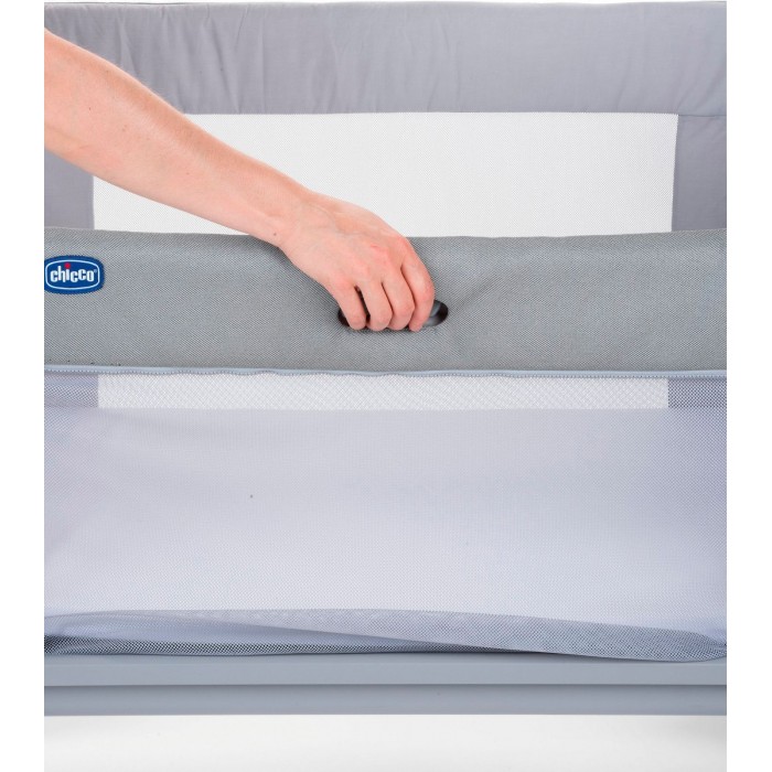 - Запатентованная система предотвращает боковую панель от того, что она останется открытой в случае, если кроватка не полностью прикреплена к родительской кровати