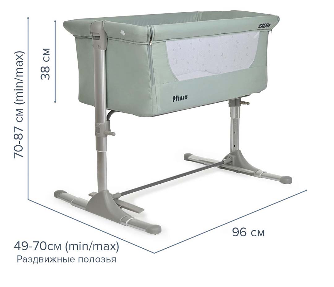 Приставная колыбель - трансформер Pituso имеет безопасную систему крепления к кровати родителей и позволяет вам спать рядом с малышом. Уникальная связь между малышом и родителями будет еще сильнее, а ночи – спокойнее!Особенности: