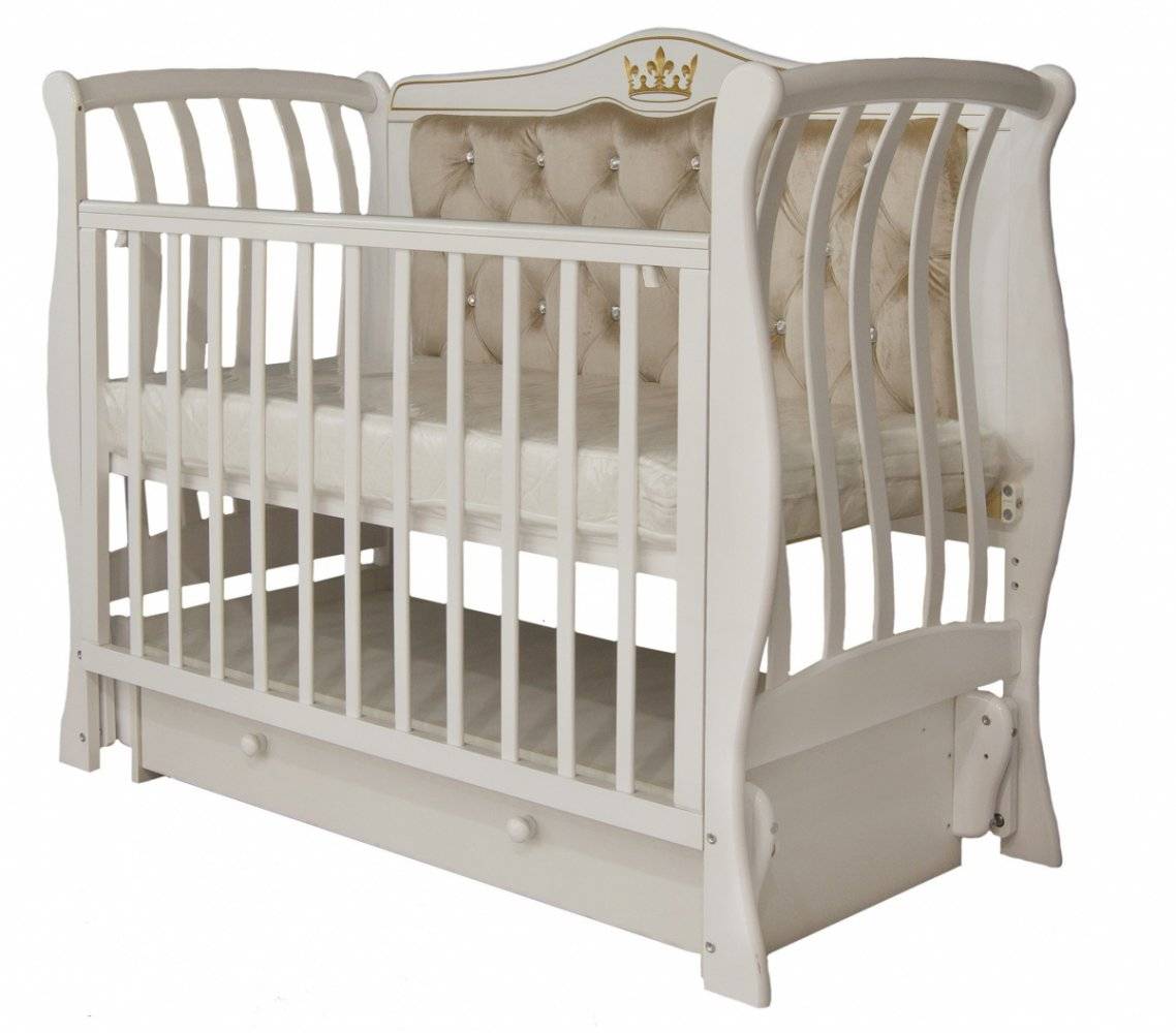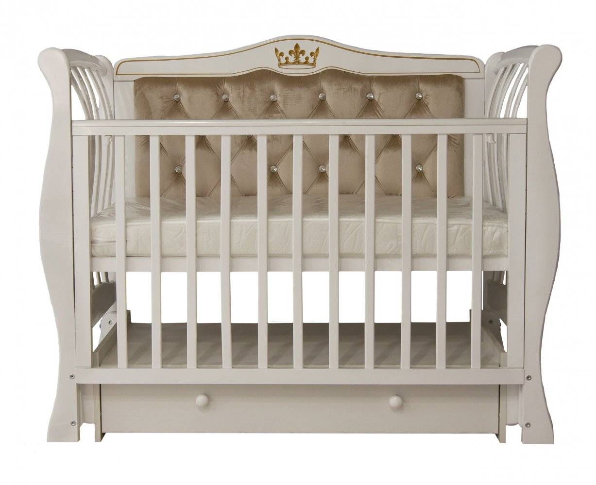 Детская кроватка Витэлия люкс два со стразами, маятник универсального качания, белая