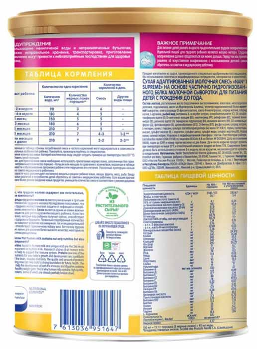 Молочная смесь, предназначенная для кормления здоровых детей с рождения до года в случаях, когда грудное вскармливание невозможно. Смесь Nan Supreme обеспечивает вашего ребенка всеми питательными веществами, необходимыми для гармоничного физического и умственного развития.Состав смеси Nan Supreme содержит: